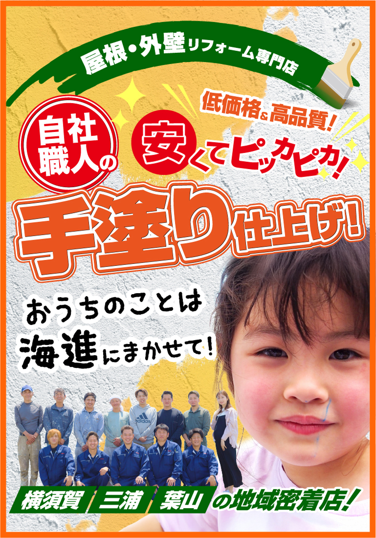 当店は、横須賀を拠点に、地域密着のリフォーム店として、特に外壁塗装、屋根工事、雨漏り修理を強みとして、これまで累計1,000棟を超える実績がございます。