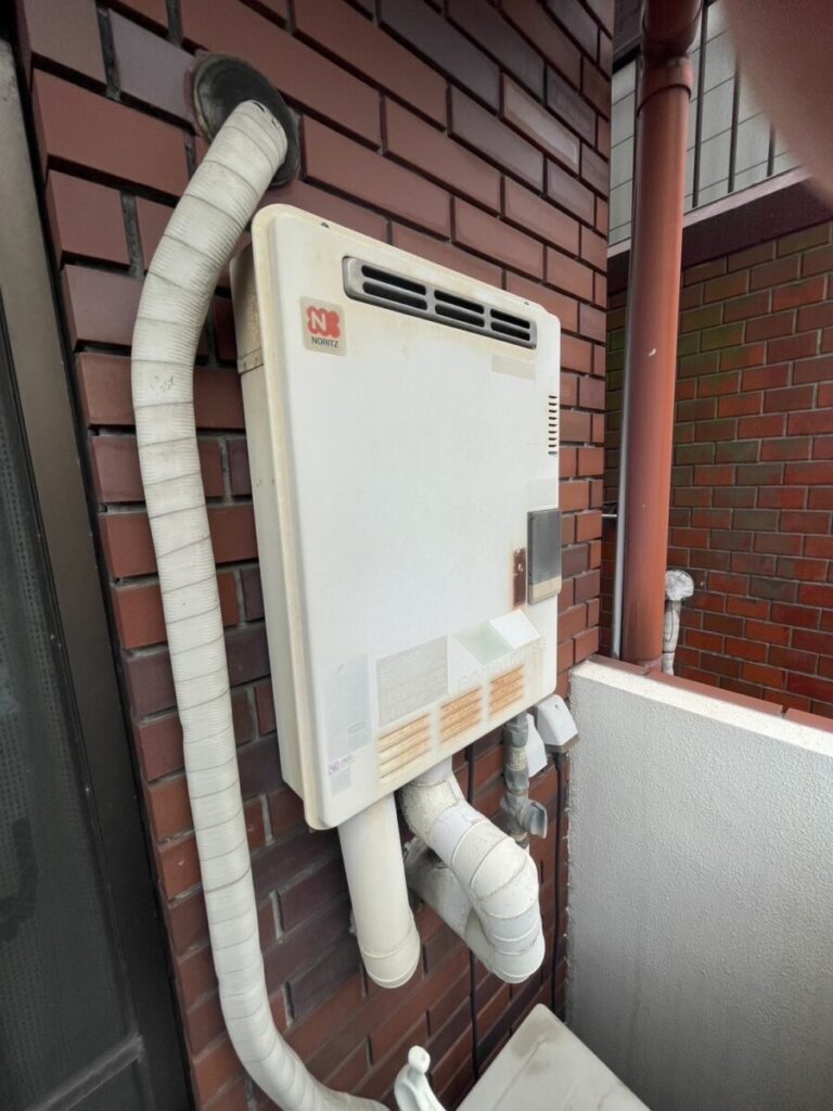 現場を確認すると、既設機種は ノーリツ製 ガス給湯器 GQ-1601WMSG