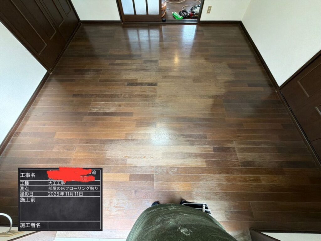 ・傷みや色あせが目立っていた既存フローリングを撤去