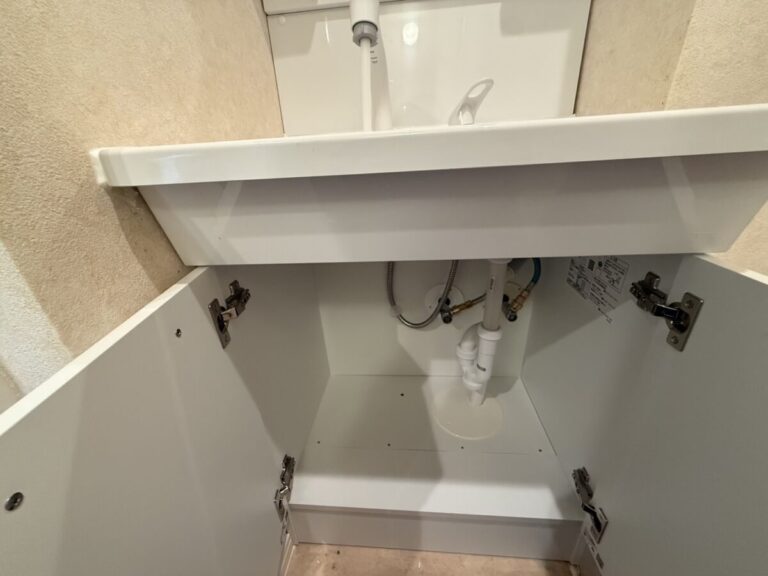 既存の洗面台は経年劣化により、水栓部分の傷みや収納の少なさが気になっていました。特に毎日使う場所のため、「もっと明るく、収納力のある洗面台にしたい」というご希望をいただきました。