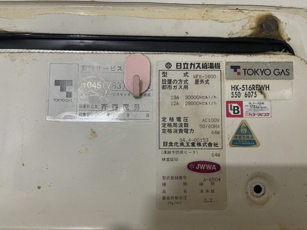 日立製給湯器 → リンナイ製給湯器へ交換