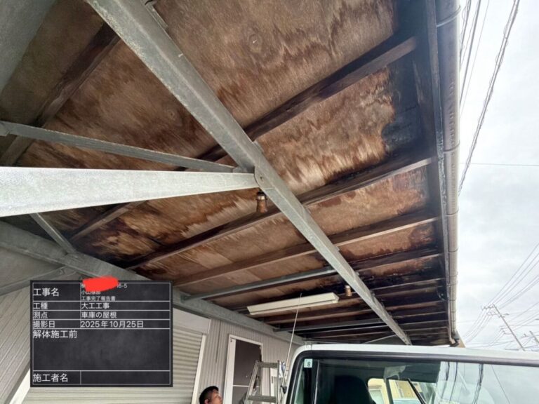 今回、車庫屋根の下地組み替え工事に続き、仕上げとして 軒天(屋根裏)の塗装を行いました。 ⸻ ✅ 施工内容• 古い下地を撤去• 新しい木下地を組み直し• 野地板貼り• 防水シート施工(ルーフィング)• 軒天塗装 ← 今回 […]