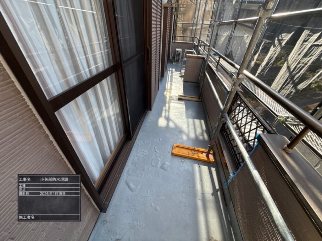 今回は、ブクブクに膨らんでしまったバルコニー防水を